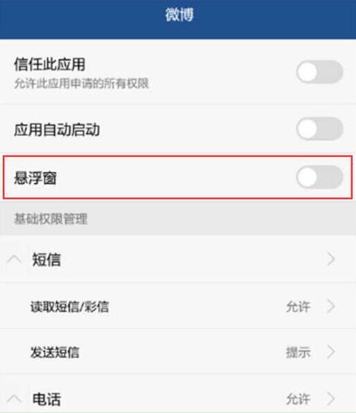 最后点击打开或关闭【悬浮窗】的开关即可打开或关闭应用的悬浮窗。