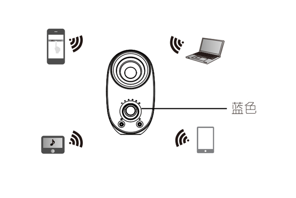 3、蓝牙连接状态下长按多功能旋钮,可断开当前蓝牙连接,蓝色指示灯闪烁;蓝牙未连接状态下此时长按多功能旋钮进入待机。