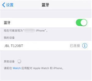 此时手机的蓝牙设备搜索列表上会出现耳机的名字,如果没有,请尝试刷新蓝牙功能界面。选择“JBL T120BT”按照手机上显示的说明步骤配对连接。