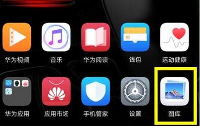 首先点击进入华为畅享9plus手机桌面上的【图库】,