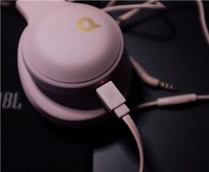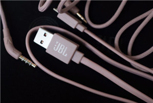 购买耳机时,包装盒内会赠送一根比较长、颜色和耳机配色相同的 USB 充电线,两边接头都印有 JBL 耳机的品牌 logo 。