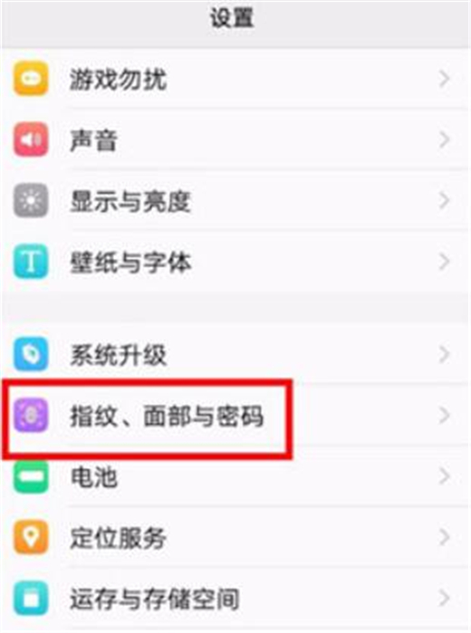进入设置选项之后,找到【指纹、面部与密码】选项,点击进入。