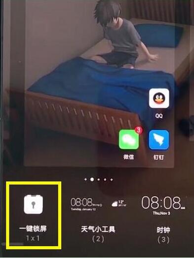 然后在手机屏幕下方找到并点击【一键锁屏】即可将一键锁屏添加到手机桌面上,