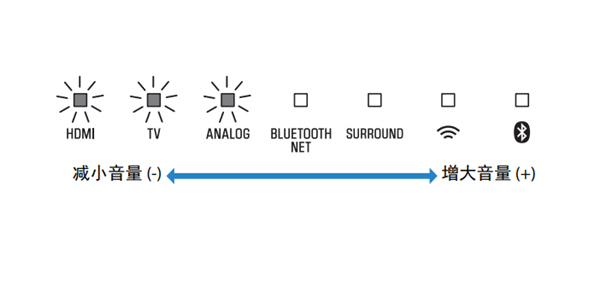 1、按【电源】打开本机。主机和低音炮通过无线连接自动连接。当连接成功建立后,低音炮后面板上的无线指示灯亮起,且本机播放准备就绪。