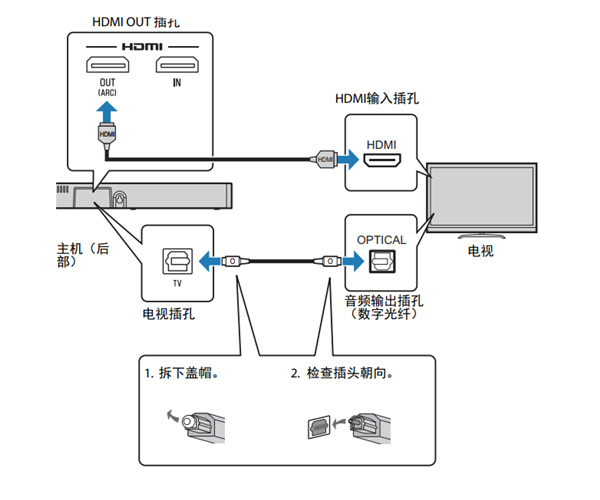 2、连接电视连接支持ARC(音频返回通道)的电视。