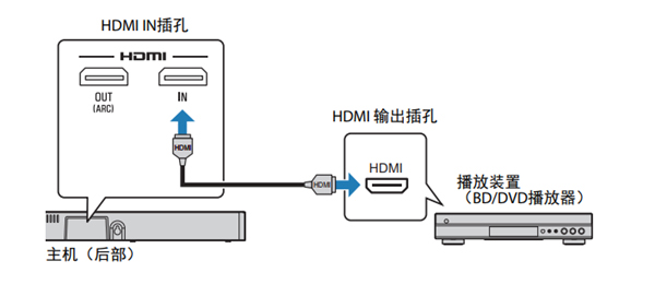 用 HDMI 缆线(另售)将 BD/DVD 播放器等播放装置连接到本机。最好用 HDMI 缆线连接带有 HDMI 输出插孔的播放装置。