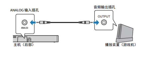 利用 3.5 毫米立体声迷你插头缆线(另售)将没有光纤数字输出的游戏机或电视等播放装置连接到本机。