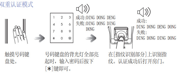 1.先触摸指纹锁面板激活键盘,然后输入正确密码,再按[*]键确认,密码验证正确之后进行下一步。(️如果有浮动安全码就先输入安全码,显示什么按什么)