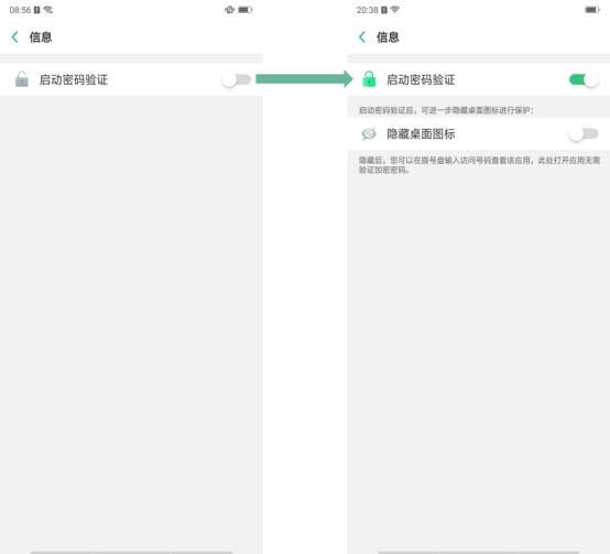 首次开启【隐藏桌面图标时】,会弹窗提醒【设置访问号码】,访问号码需以#开头且以#结束的1-16位数字的访问号码,例如:#123456#,设置成功后,会有界面提醒牢记访问号码。