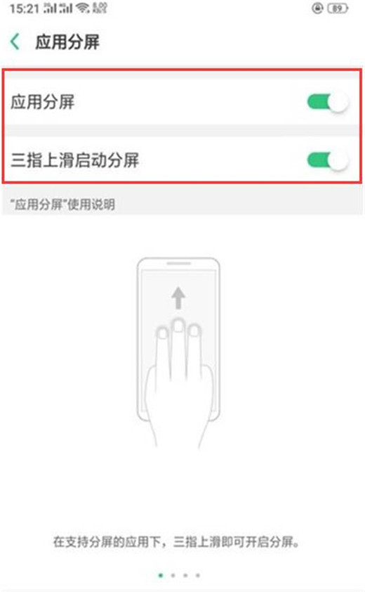进入其他设置页面后,找到【应用分屏】并开启应用分屏及【三指上滑启动分屏】选项。
