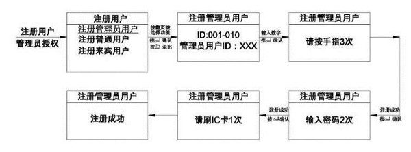 此时光标在”注册用户“上,直接按[↵]键,然后输入一个3位数的ID(️管理员用户ID:001-010;用户密码ID:011-040;来宾用户ID:041-080),然后按[↵]键确认。