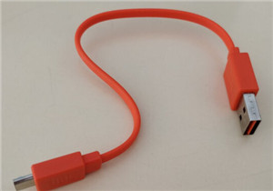 购买耳机是会附赠一根骚橘色的 USB 充电线,两边接头都印有 JBL 的品牌 logo 。