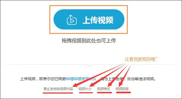 4、进入之后,这里就可以上传视频了!网页端、桌面客户端允许上传的视频上限为4G。网页端、桌面客户端允许上传的视频格式为: mp4,flv,avi,wmv,mov,webm,mpeg4,ts,mpg,rm,rmvb,mkv