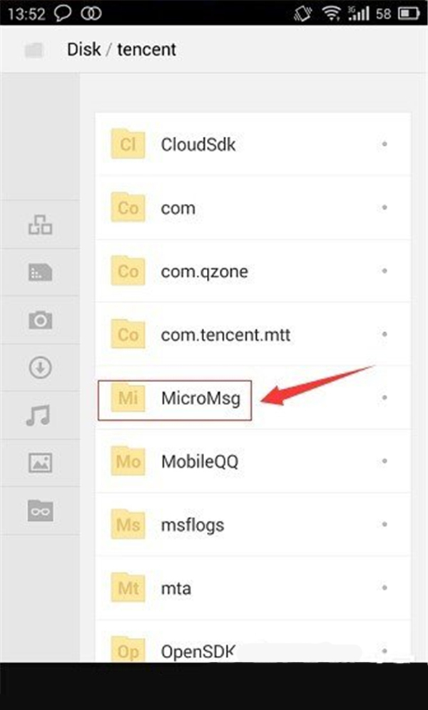 3、点击打开,再找到“MicroMsg”这个文件夹。