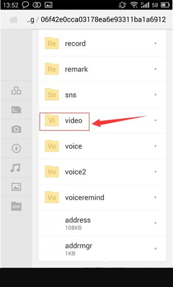 5、找到文件夹“video”打开,如图所示,如果录制有小视频并保存之后文件夹就不会是空的。