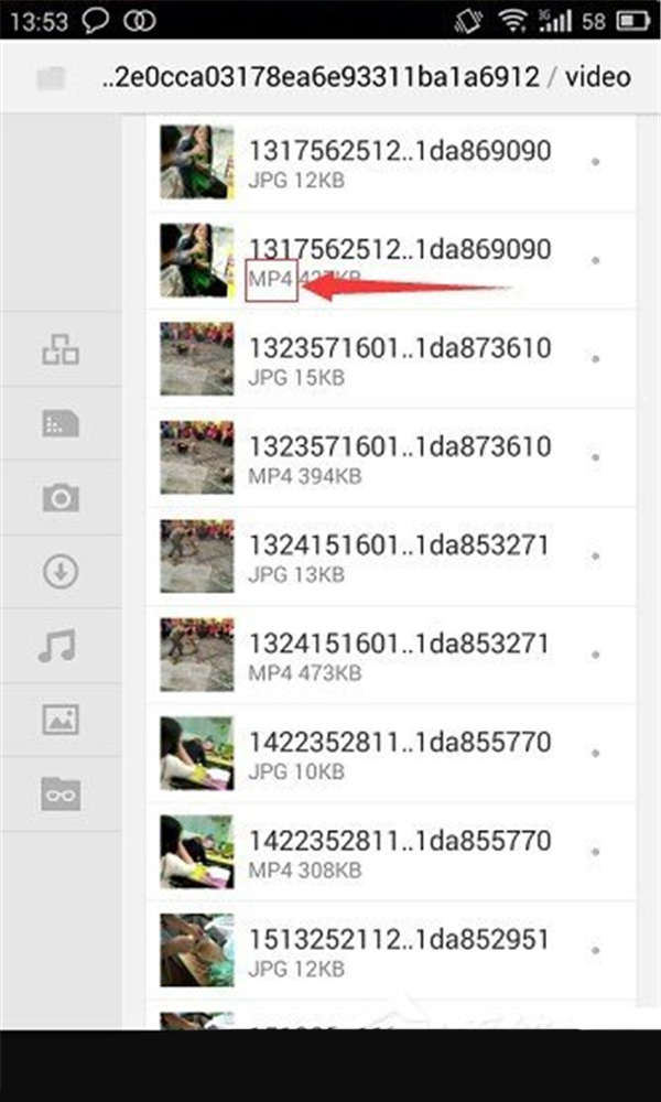 6、打开后会出现如图所示界面,点击MP4的视频,就能播放,或者发送给qq好友啦,是不是很厉害呢!