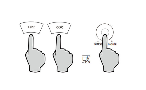 漫步者S301有源音箱怎么使用光纤或同轴输入1、按遥控器上的OPT / COX键或按R主卫星箱上的音量调节 / 输入切换旋 钮选择光纤/同轴输入模式,主卫星箱部分相应的输入音源指示灯会被 点亮。