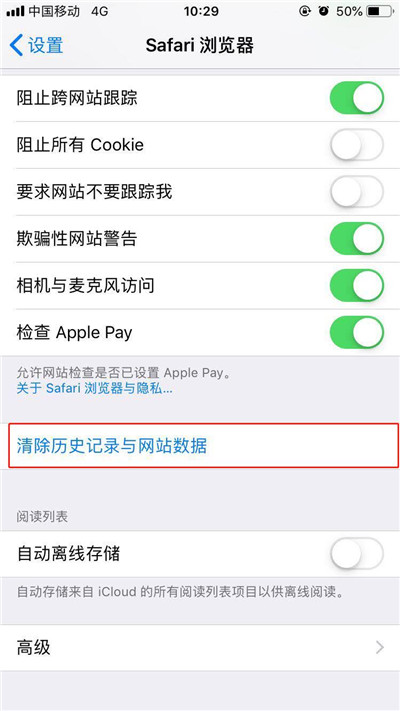 点击【清除历史记录与网站数据】即可成功清理掉Safari浏览器的历史记录。