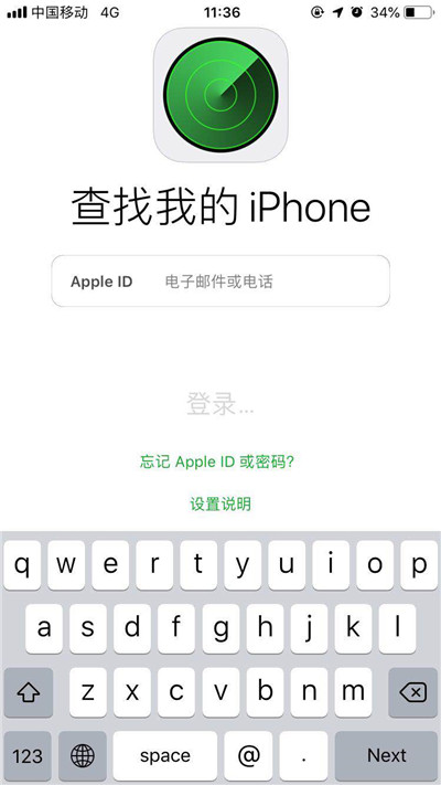 输入丢失的手机Apple ID账号及密码,点击登录。