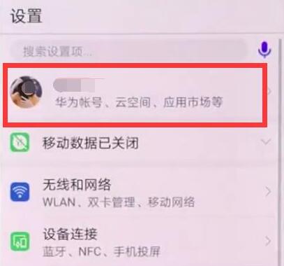在设置页面,点击第一栏的华为帐号(没有登录的话,请点击“登录华为帐号”进行登录),