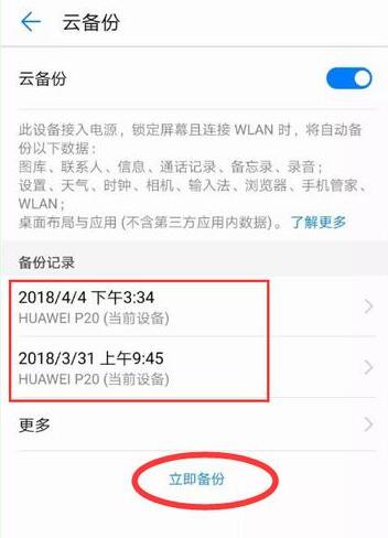 急需备份数据的话可以点击【立即备份】即刻进行备份,备份完成后,新的备份记录会出现在“备份记录”中,点击备份记录可以选择需要恢复到手机的数据。