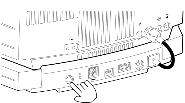 1、在 SoundTouch基座的背面,按住 Control(控制)按钮大约 8 - 10 秒,直到 Wi-Fi 指示灯熄灭。