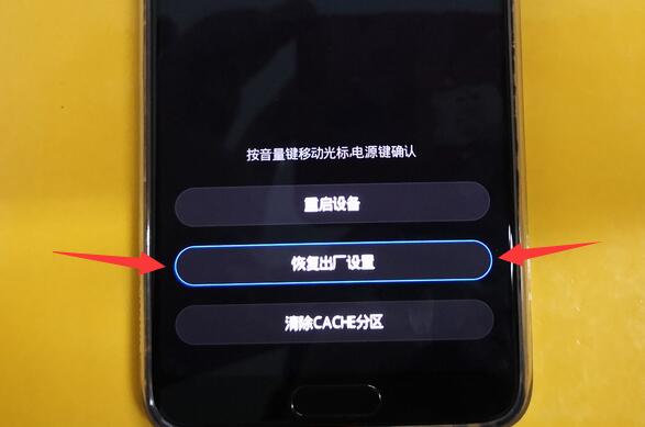 Recovery模式下是不能触屏的,所以我们需要使用音量上下键来选择哪个选项,选择“恢复出厂设置”,然后按一下电源键确认即可恢复出厂设置!