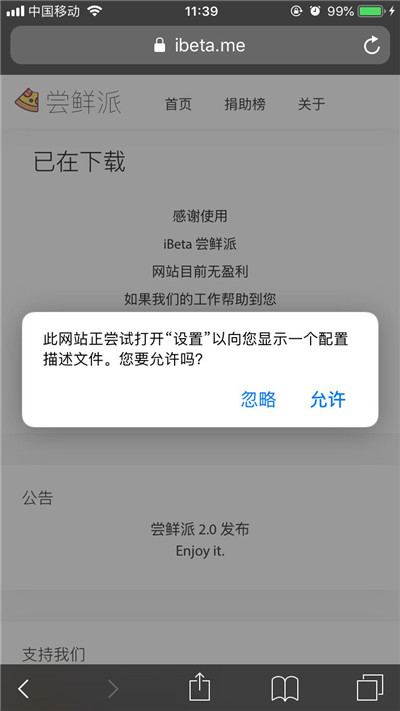 用苹果自带浏览器Safari打开(ibeta.me)网站,点击iOS12.1