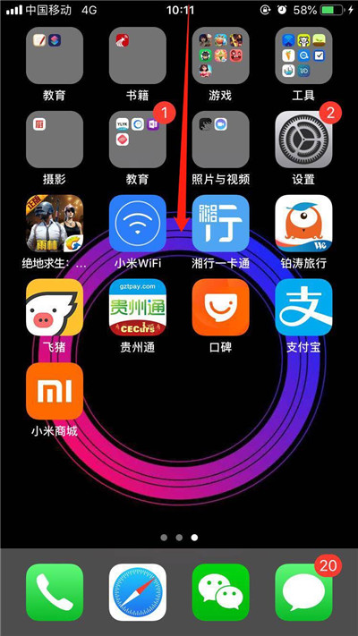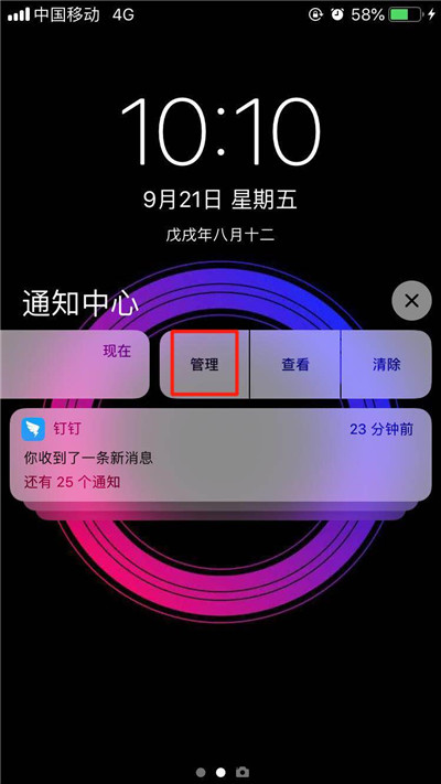 用手指下拉屏幕顶部,呼出通知中心。