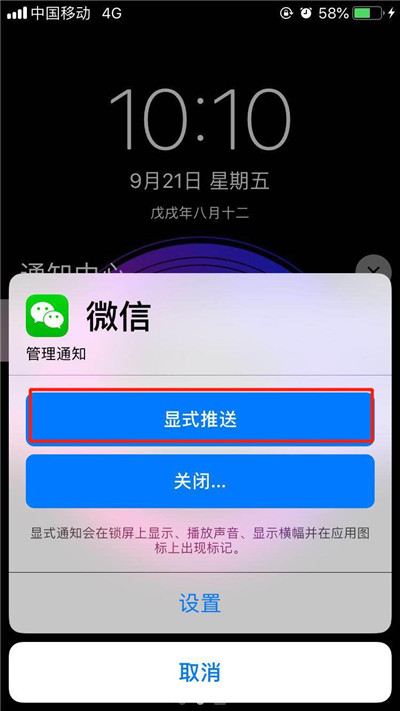 更新了ios12系统之后,多了个隐式推送功能,隐式通知会在通知中心显示,但不会再锁屏上显示,不播放声音、不显示横幅等,有的人把微信通知开启了隐式推送之后不知道怎么解除,今天小编就来教教大家。
