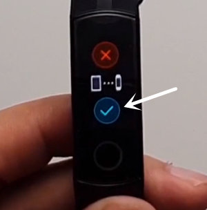 当手环振动提示收到配对请求时,点击手环屏幕上的打勾图标来确认配对。