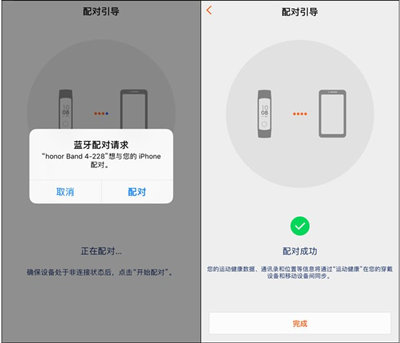 手机弹出蓝牙配对的请求,点击 ️配️对 ,手环和手机就会自动开始配对,显示配对成功之后就完成手环的配对了。