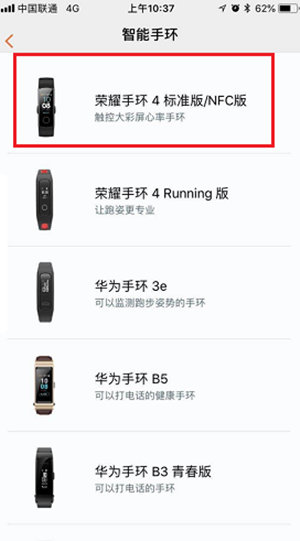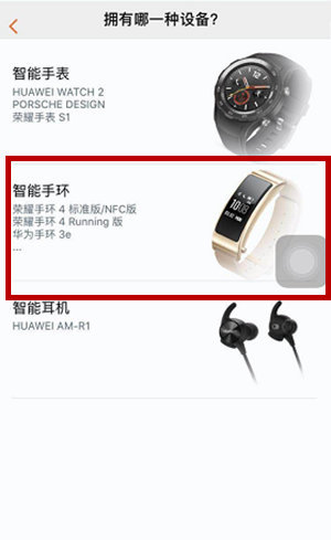在可选智能手环种类中选择点击 ️荣耀手环 4标准版/NFC版。
