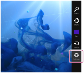 如果使用触摸面板,则通过从画面右侧向中间滑动来显示超级按钮,然后选择[Settings]。