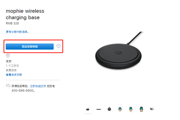 2、选择自己喜欢的无线充电器款式以及颜色,点击【添加至购物袋】,然后输入相关配送地址以及联系方式即可。