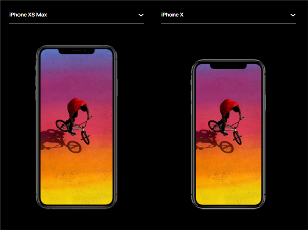 iPhone XS Max对比iPhone X屏幕尺寸: