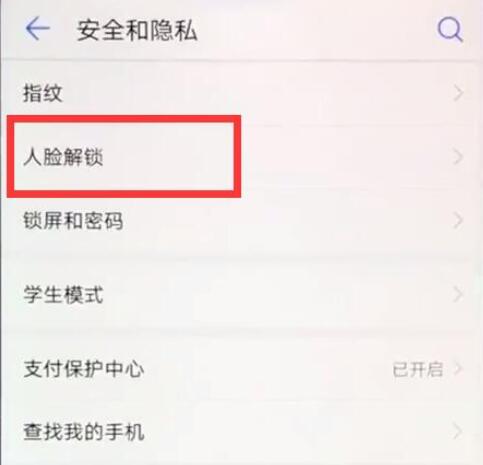 3、在安全和隐私的界面点击进入【人脸解锁】,