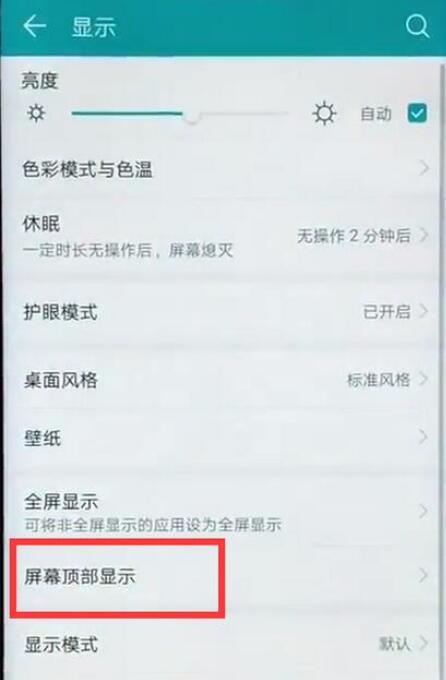 3、进入显示页面后,我们找到并点击打开【屏幕顶部显示】,