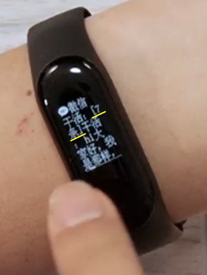 手环单条信息字数上限这里有网友做过一个测试,给连接手环的手机发送了一条几百字的微信,看手环上具体怎么显示的。