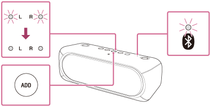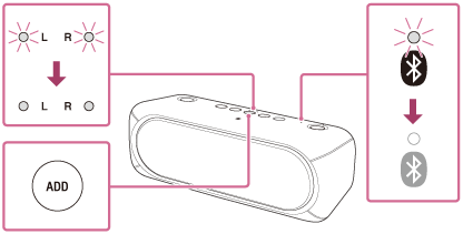 【BLUETOOTH】和L/R指示灯以白色闪烁。约3秒后将听到提示音且L/R指示灯点亮。