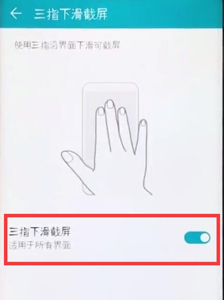 5、最后我们点击打开【三指下滑截屏】的开关即可打开此功能,在需要截屏的页面三指下滑即可截屏。