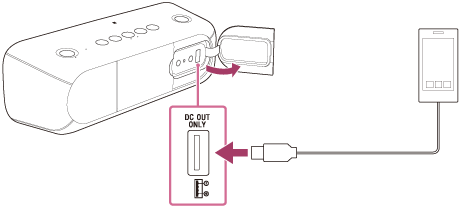 1、使用USB电缆(未附送)将智能手机等USB设备连接到DC OUT ONLY端口(USB)。