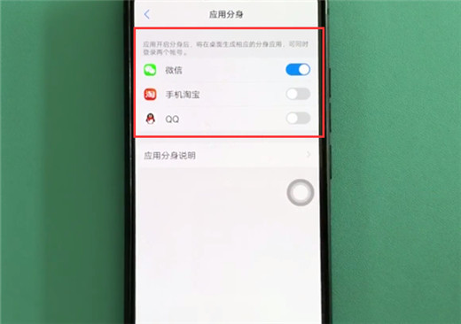 第三步:在应用分身界面,我们可以看到目前只支持微信、淘宝、QQ,我们打开需要分身的应用。