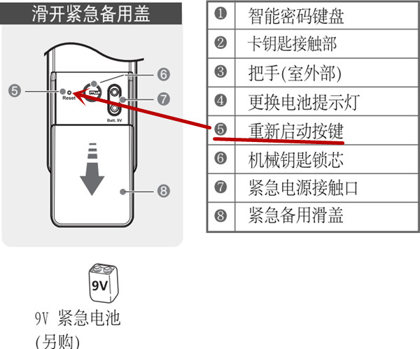 ️耶鲁智能锁的初始化操作非常简单,只需要找到重启按键按钮就行。不同耶鲁智能锁的重启按钮的位置是不同的,就像YDM系列智能锁,重启按键是在把手下方的盒盖下,而YMH70的重启按键则是在门把手上面,正中央的位置,还有YDR4111的重启按键则是在面板的左下方。但是耶鲁智能锁的重启按钮有一个很大的特点——按钮在智能锁正面,而且耶鲁智能锁正面只有一个按钮。️找到按钮之后,长按,屏幕熄灭就初始化完成了。
