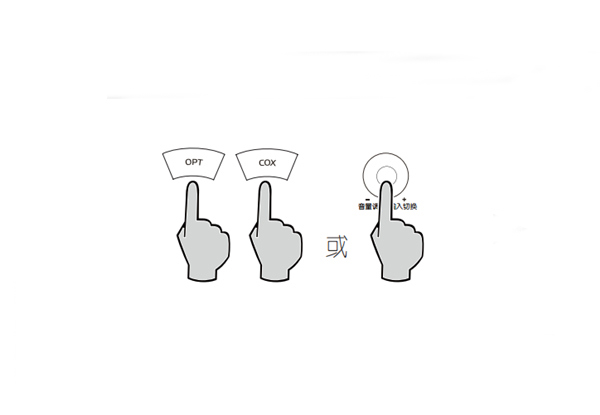 漫步者S201有源音响怎么使用光纤或同轴输入1、按遥控器上OPT/COX键或按R主卫星箱上的音量调节/输入切换旋钮选择光纤/同轴输入模式,主卫星箱部分相应的输入音源指示灯会被点亮。