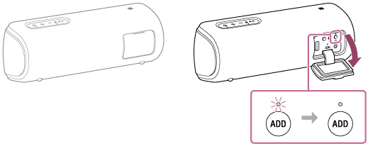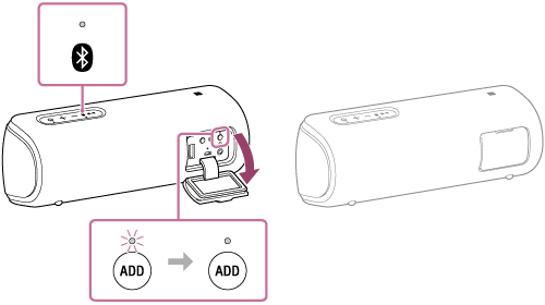 将会听到提示音,并且【BLUETOOTH】指示灯和ADD(Speaker Add)指示灯闪烁。在约3秒至5秒后,发出提示音,ADD(Speaker Add)指示灯保持点亮。