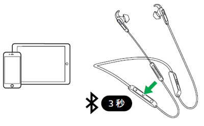 2.确保耳机处于关闭状态,然后按住多功能按钮3秒钟,直到状态LED指示灯闪烁蓝光并在耳塞中听到提示。