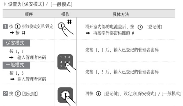 耶鲁指纹锁一般模式设置耶鲁指纹锁一般模式的设置和保安模式设置步骤️第一步和第三步都是一模一样的,只是第二步要改一下。
