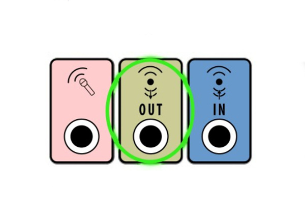 1、使用提供的音频连接线,将 1/8 英寸(3.5 毫米)插头的一端插入到电脑上的音频输出插孔。该插孔在大部分个人电脑声卡上为绿色。如果不是,请参考以下连接方式: