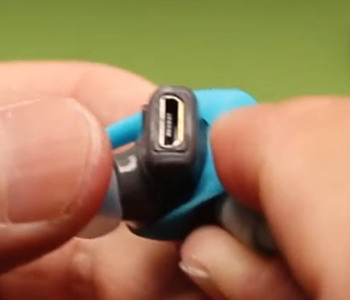给耳机充电向后将EarWing耳翼拉到右侧耳机上,露出USB充电端口。